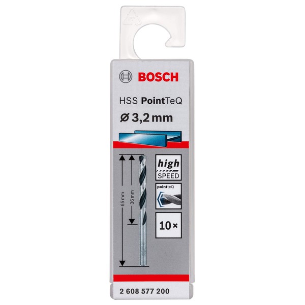 Bosch Professional HSS PointTeQ Twist Drill Bits (for Metal, 3.2 x 36 x 65 mm, Drill Driver Accessory), Pack of 10