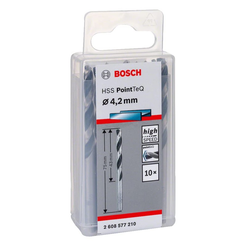 - Box contents: 10 x HSS PointTeQ twist drill bits for metal, 4.2 x 43 x 75 mm.