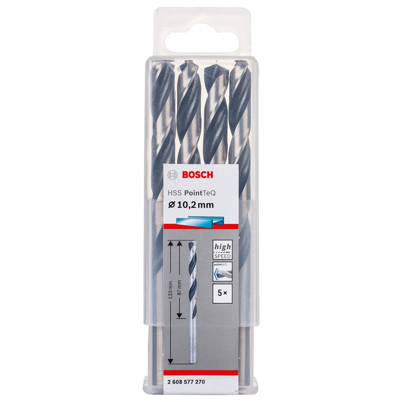 - Box contents: 10 x HSS PointTeQ twist drill bits for metal, 4.9 x 52 x 86 mm.