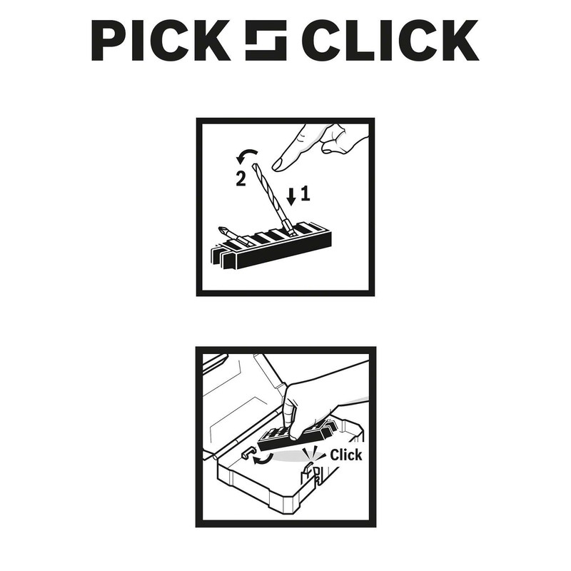 - Pick and Click System: securely snap the bit bundles into the click slots or simply press the release tab to remove and replace
