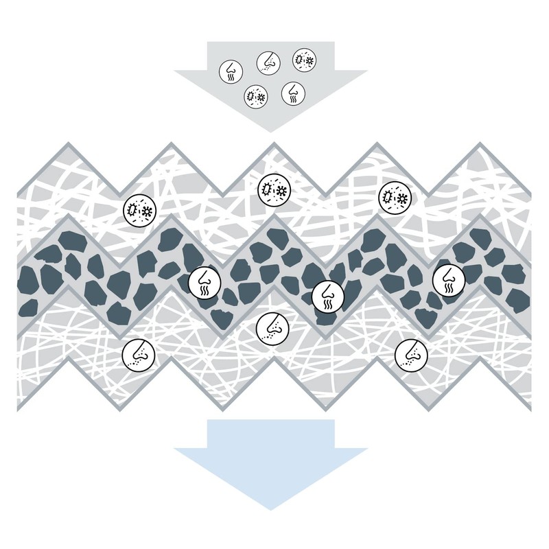 - Retains air pollutants such as ozone and exhaust emissions while filtering out foul-smelling gases