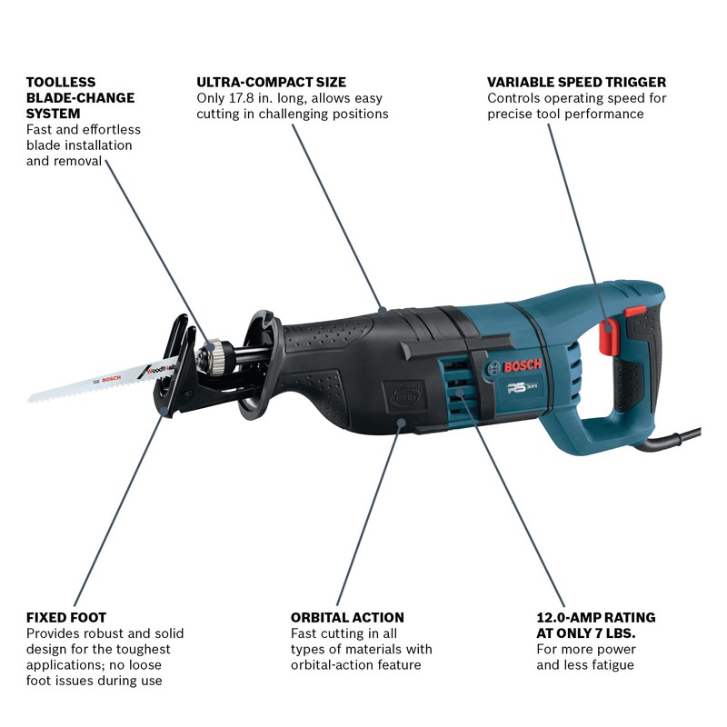 BOSCH RS325 120-Volt 12 Amp Reciprocating Saw, Variable Speed, Compact