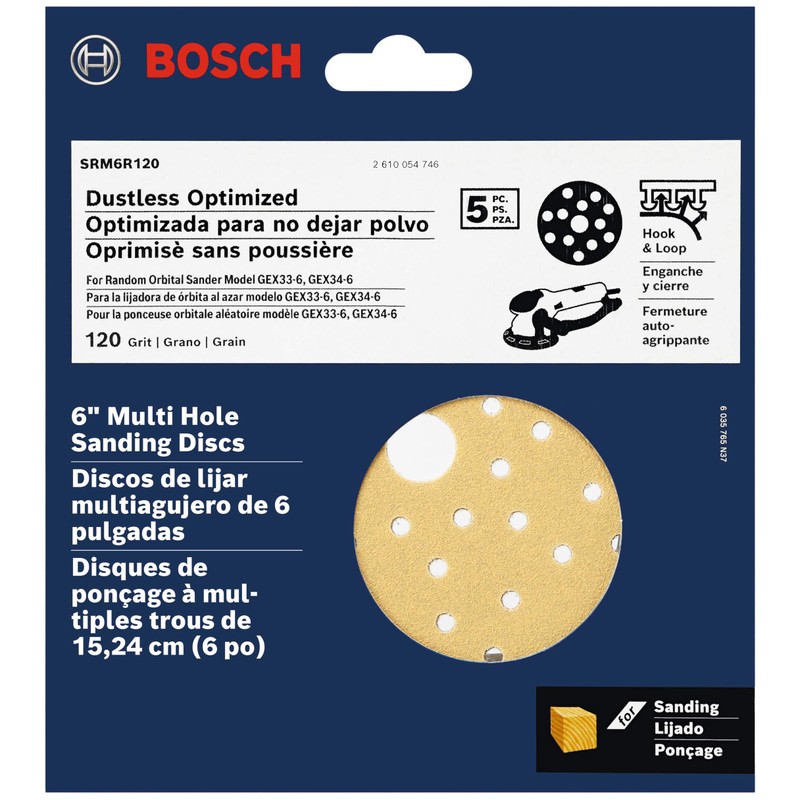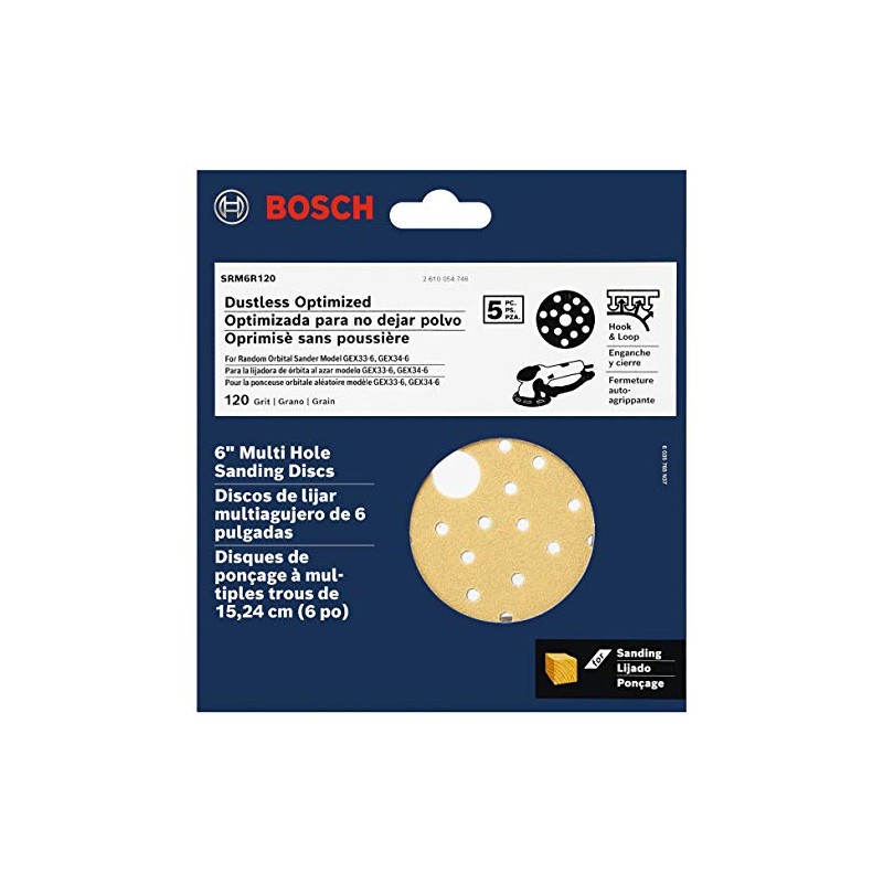 Bosch SRM6R120 5 pc. 120 Grit 6 in. Multi-Hole Hook-and-Loop Sanding Discs