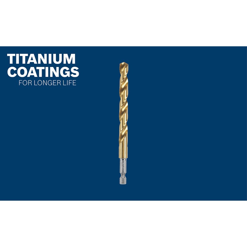 BOSCH TI2159IM 1-Piece 1/2 in. x 6 in. Titanium Nitride Coated Metal Drill Bit Impact Tough with Impact-Rated Hex Shank for Applications in Heavy-Gauge Carbon Steels, Light Gauge Metal, Hardwood