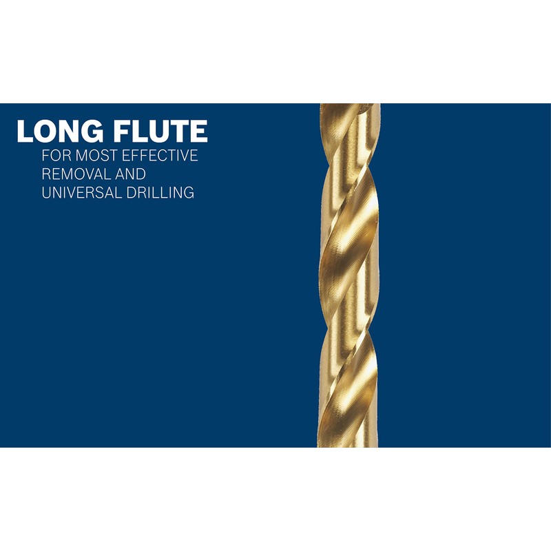 Bosch impact tough titanium drill bits provide 2X life over standard impact drill bits. Designed for use in the higher torque impact drill/drivers, they have an upgraded tip design for no-skate starts and a titanium cooling shield thanks to the titanium nitrate coating. The coating provides less friction and thus less generated heat. The bits have impact-rated shanks. Electricians, Plumbers and HVAC Pros will appreciate the tough construction of the bit, rated for heavy-gauge carbon steels, as well as light gauge metal and hardwood applications.