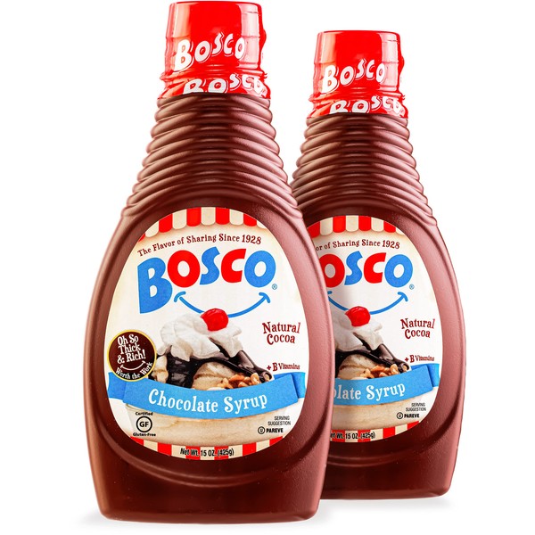Bosco Chocolate Syrup 15oz (2 Pack) | Fat Free, Gluten Free, Made with Natural Cocoa