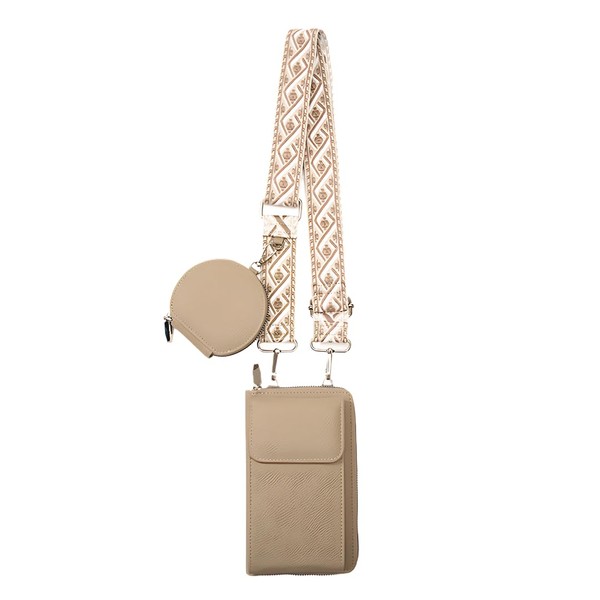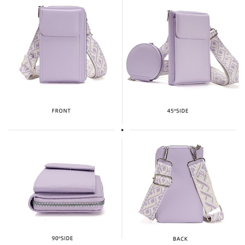 - 【仕様】スマホバッグ:横幅11cm×高さ18cmx奥行4.5cm、小銭入れ:幅10cmx高さ10cmx奥行2.5cm、ストラップ:長さ約120cm