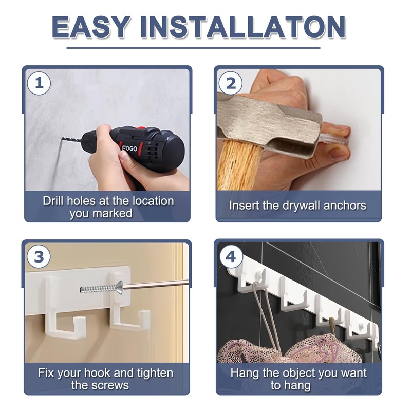 • 【Easy To Install】These coat rack wall mounted are easy for wall mount. Mounting hardware included with screw, plastic expansion anchor and black screw cap. The wall hanger can be installed on the brick wall, wooden wall, drywall, tile wall, or behind the door.