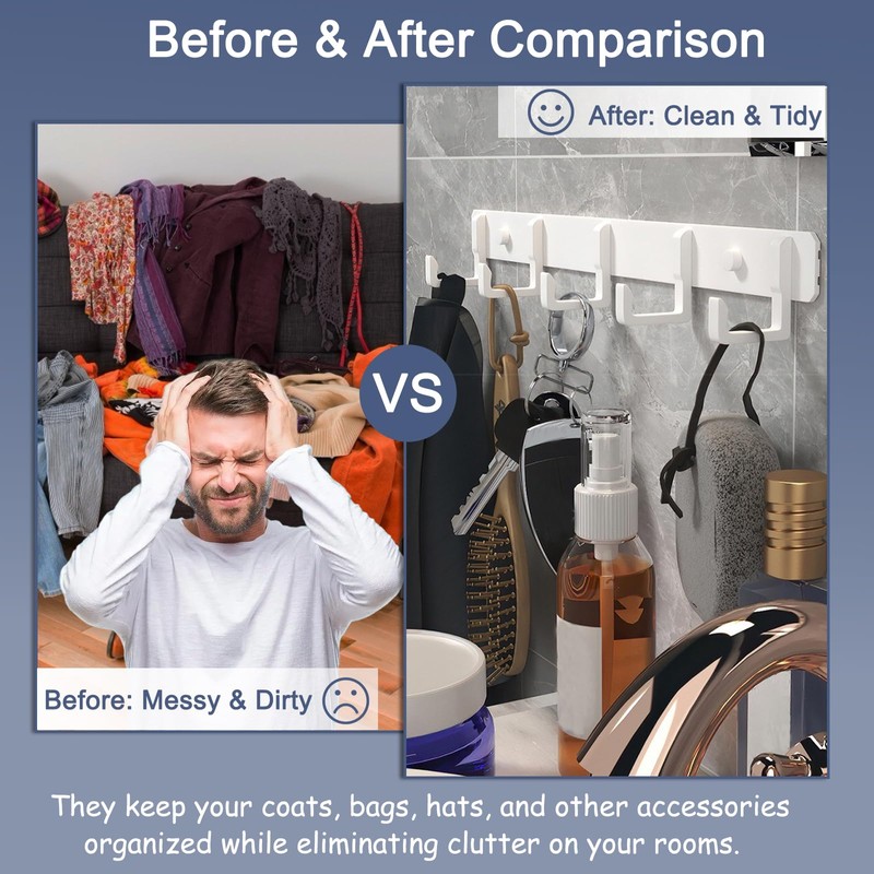 • 【Anti-Scratch & Anti-Slip】All clothes hook are smooth, it will never scratch your coats, scarves, towels etc. Long projected hook arm to protect your items from falling out, create more storage space for you to hang your daily stuff.