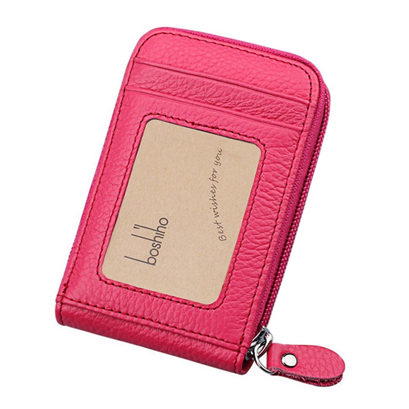 boshiho Genuine Leather 12 Card Slots, Large Capacity, Skimming Prevention, Credit Card Case, Coin Case, Transparent Window Pocket, Women's, Men's, Small, License Case, Zipper, hotpink