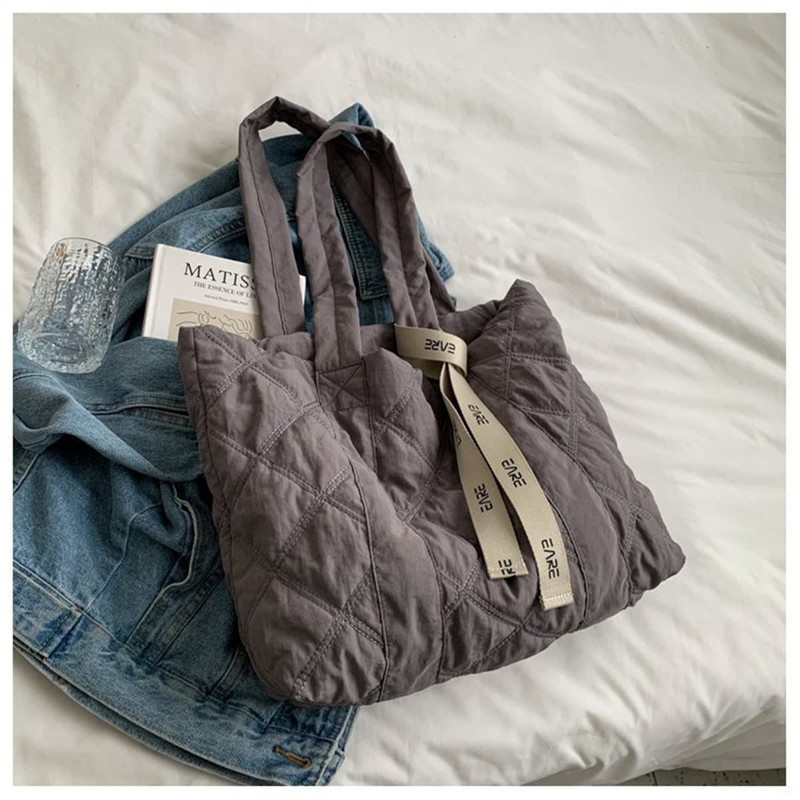 boshiho Women's Bag with Zip Nylon Padded Quilted Tote Bag Women's Large Capacity Shoulder Bag Shoulder Bag for Everyday Work Office Travel Shopping School, gray