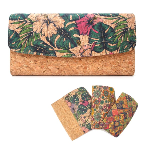 boshiho Women's Cork Wallet, Large Cork Purse, Interchangeable Wallet Flap with 3 Patterns, Sustainable, Vegan Purse with RFID Protection, Many Compartments and Card Slots, Colourful, L, Modern