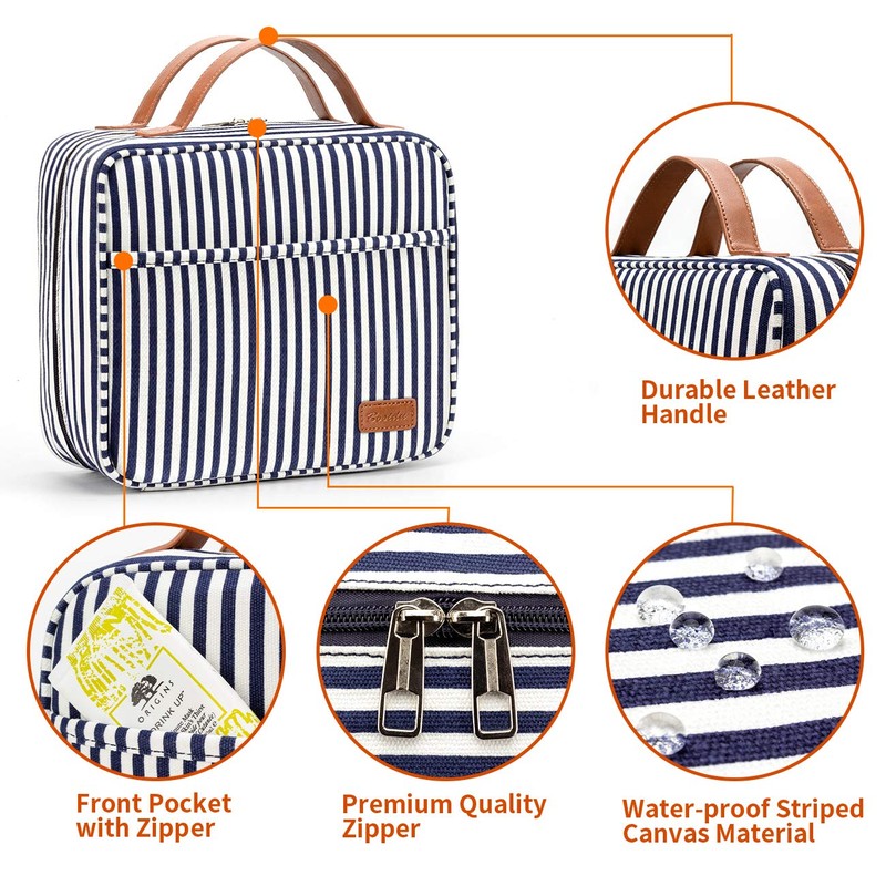 he toiletry bag includes reliable double zippers,stronger and smoother.It ensure you can easy to open and secure close,never be stuck.