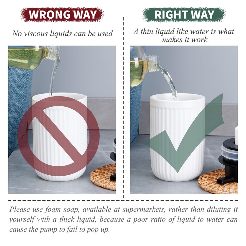 - Reusable Dispenser: The foam dispenser is made of premium ceramic, durable & lead-free. Thick matte porcelain surface, which is more comfortable. It' s safe to use and easy to clean