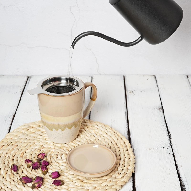 Bosmarlin Ceramic Tea Cup with Infuser and Lid, 13.5 Oz, 5 Colors to Choose, ...