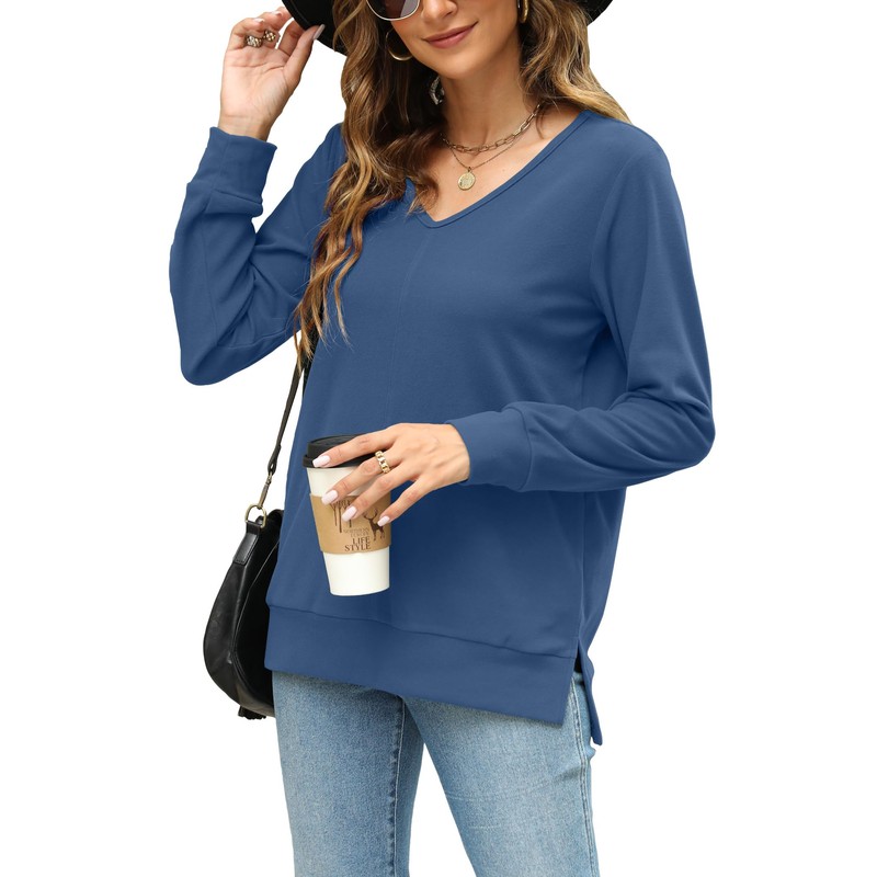 Bosmeer - Suéteres tipo túnica ligera con cuello en V para mujer, estilo otoño a la moda 2023, Azul, Small