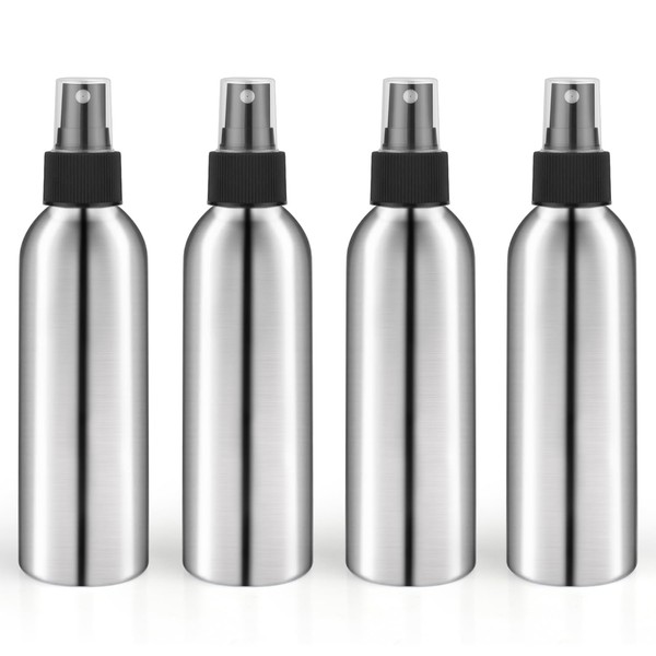 BOSMIOW 4pcs 120ml/4oz Aluminum Spray Bottles,Empty Fine Mist Spray Containers,Metal Atomizer Bottles,Reusable Fine Mist Sprayer for Cosmetic,Perfume,Face Spray,Air Freshener,Cleaning,Gardening