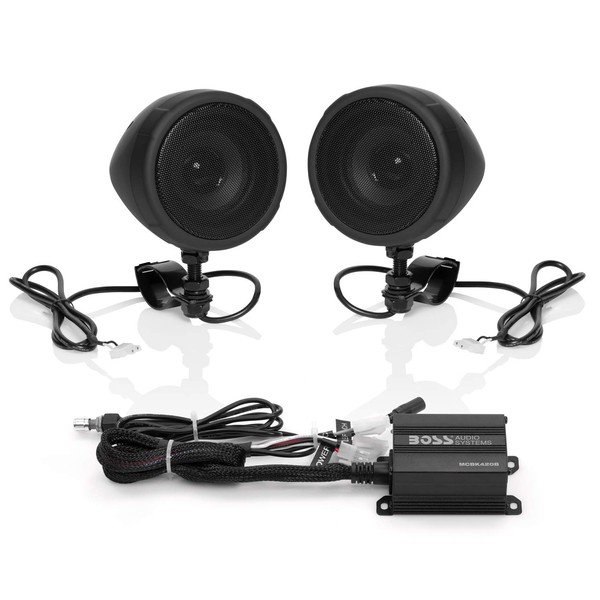 BOSS Audio Systems MCBK420B Bluetooth Speaker System - Class D Compact Amplifier, 3 Inch Weatherproof Speakers, Volume Control, Great for Use with ATVs/Motorcycles, 12 Volt Vehicles