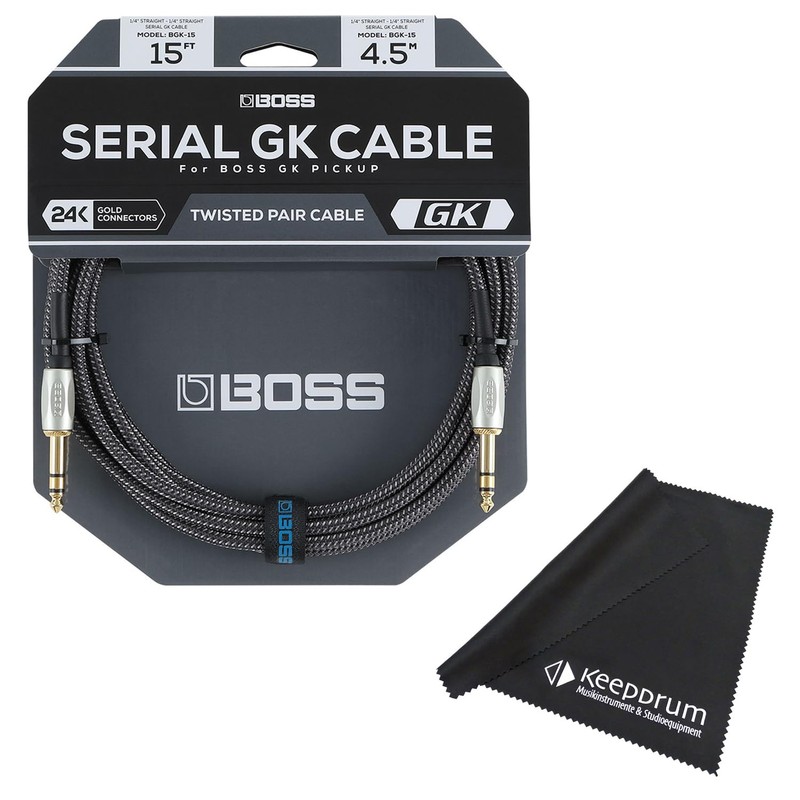 BOSS BGK-15 Serial GK Cable for Synthesizer Effects Device 4.5 m + Keepdrum Microfibre Cloth