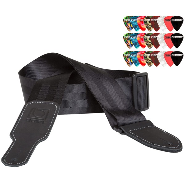 BOSS BSB-20 2-Inch Seatbelt Guitar Strap, Black Bundle with Roland Picks