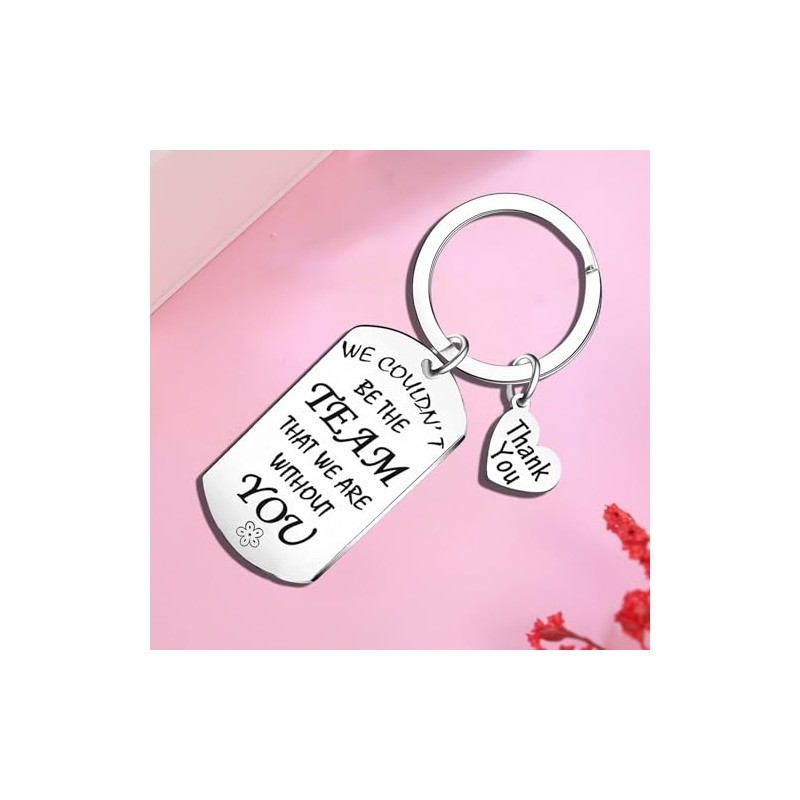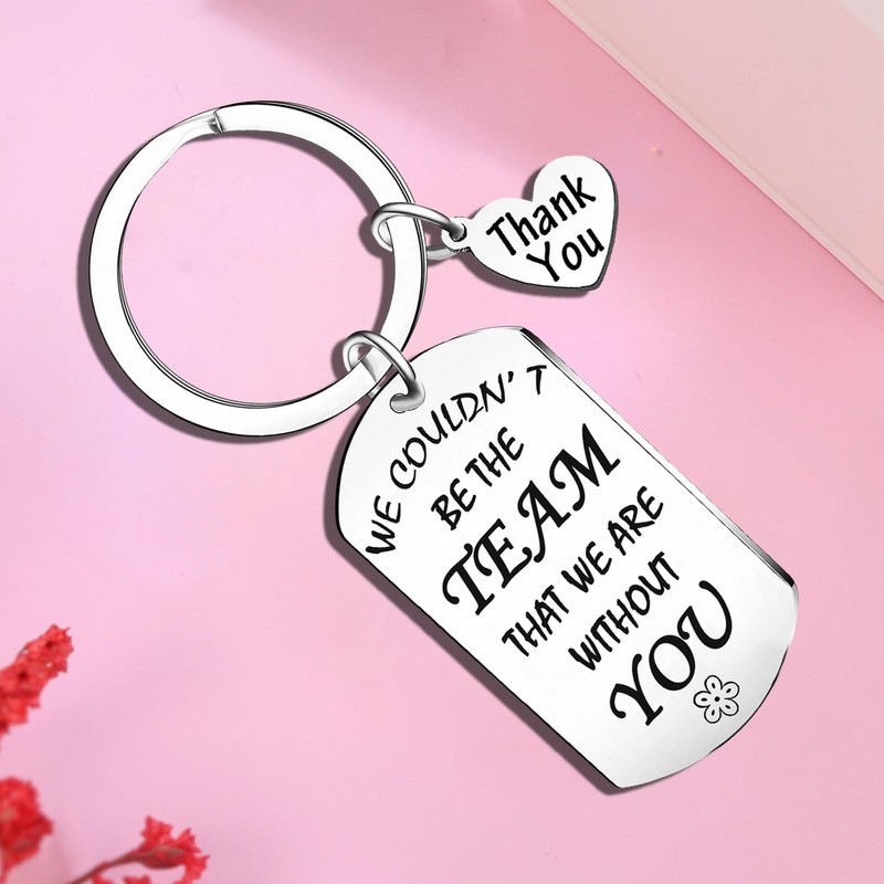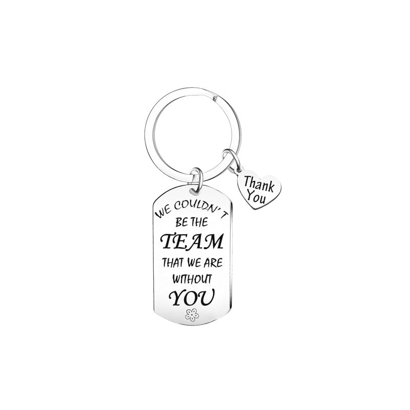 - This thank you keyring engraved with: "We wouldn’t be the team that we are without you".It is a perfect thank you gift for those who help you or your team a lot.