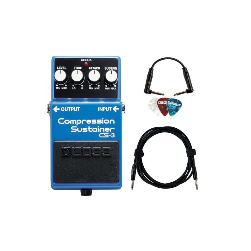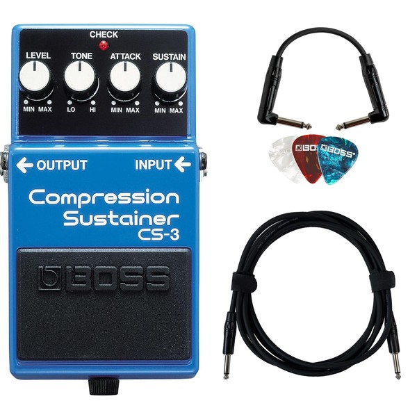 Boss CS-3 Compressor/Sustainer Bundle with Instrument Cable, Patch Cable, and Picks
