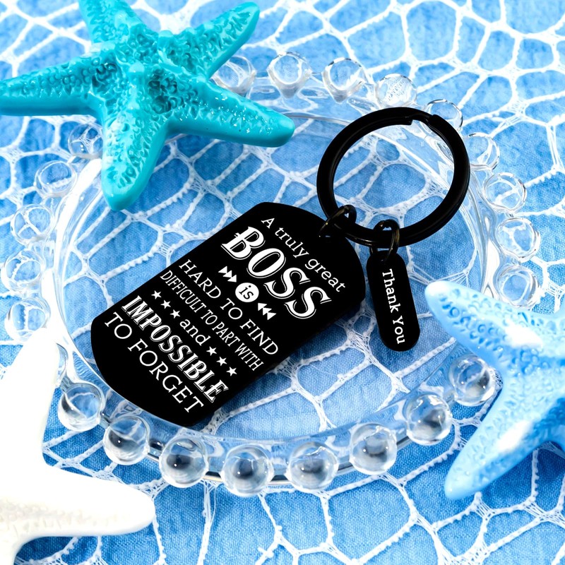 - Boss Day Gifts/Boss Appreciation Gifts for Women Men: The unique boss keychain comes with the message"A truly great BOSS is HARD TO FIND……" Its refined design and precise engraving create a lasting impression, making it a gift that’s both stylish and heartfelt