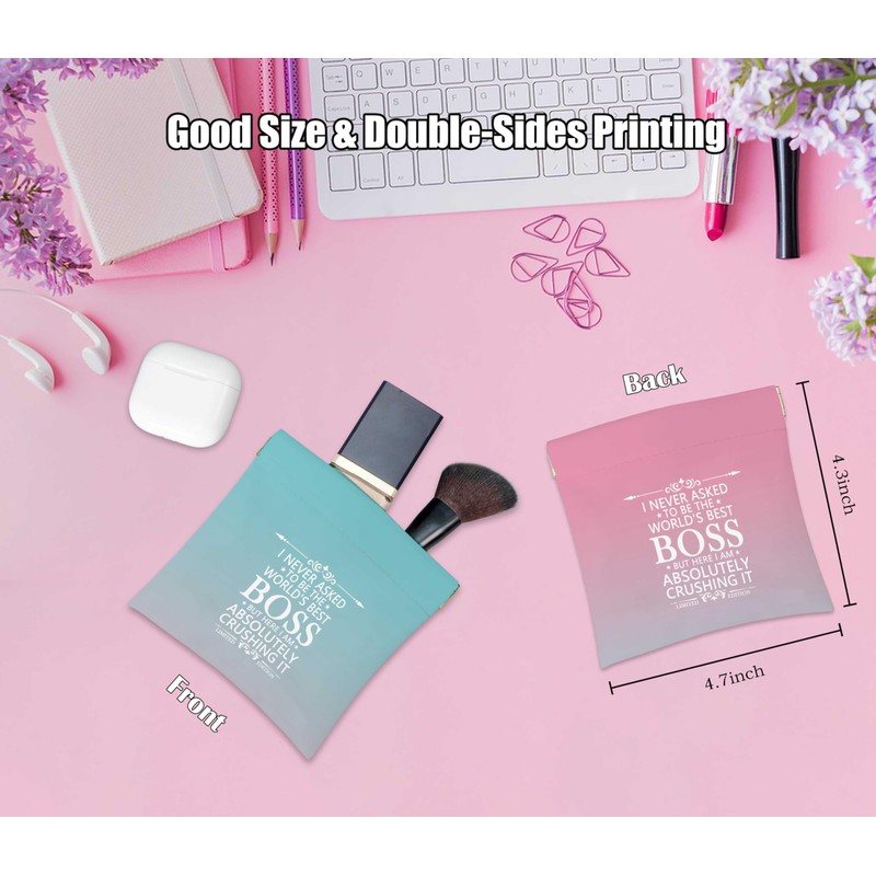 Boss Lady Cosmetic Bag with Mirror Small Makeup Bag for Purse, Portable Cosmetic Pouch Travel Toiletry Bag Organizer, Thank You Gifts from Coworker, Retirement Gifts Going Away Gifts for Boss Leader