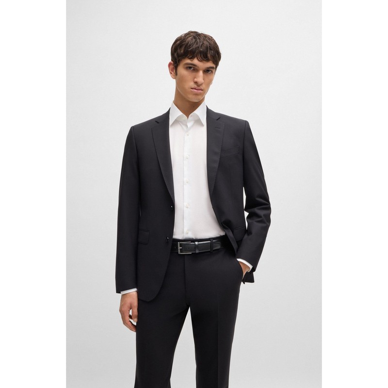 BOSS Men's Elloy Sz35 Grained Italian Leather Belt with Logo Clasp, Black 1