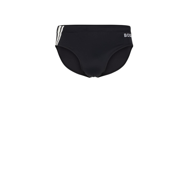 BOSS Men's Jersey Brief Swimming Trunks Stretch Jersey with Stripes and Logo, black4
