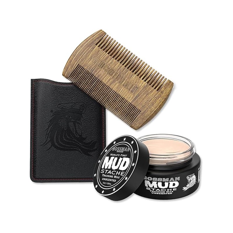 Bossman Beard Grooming Bundle: Sandalwood Comb and Mustache Wax