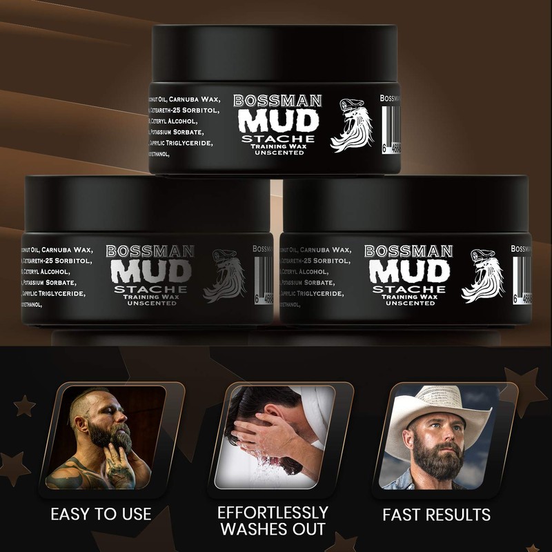 - Go Epic with Our Mustache Kit: I know what you’re thinking, “My facial hair won’t grow that way," “I can’t pull off that look." Enough my fellow naysayers. With Bossman’s MUDstache Wax, any style is possible from the iconic Handlebar moustache, to the bold Horseshoe mustache, and our favorite, the Cowboy mustache