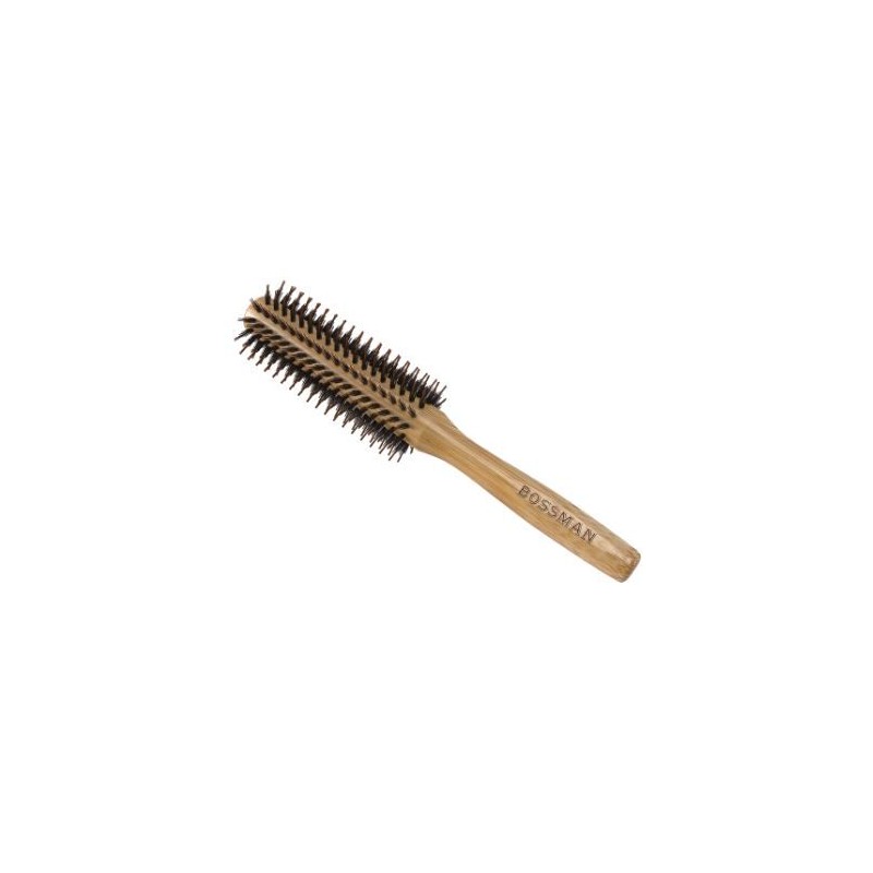 What are the benefits and features of Bossman Round Boar & Nyon Bristle Brush?- Longer and stronger Nylon Bristles to reach pores on cheeks and scalp.
