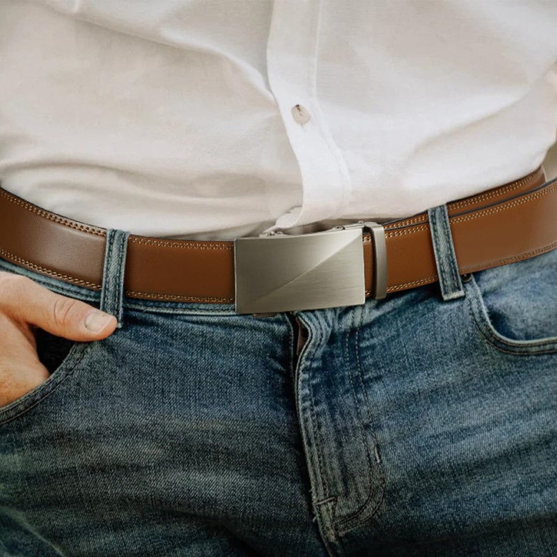 - Easy to Use: Just slide the belt into the buckle and pull the leather belt through, the buckle simply auto locks the belt, release buckle by simply shifting small lever. Simple, smooth and fashion design belts for men.