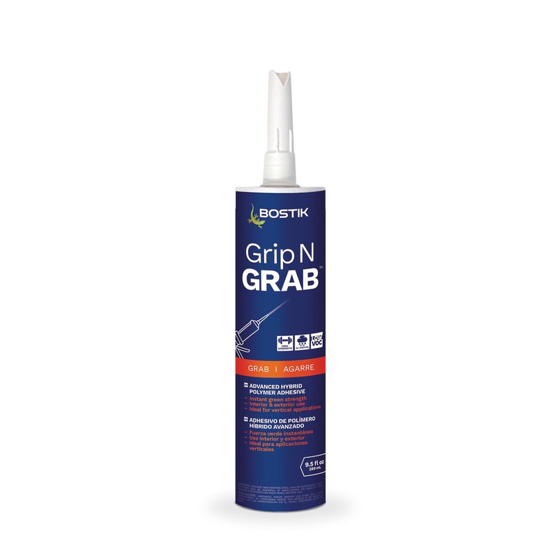 BOSTIK Grip n Grab 9.5oz Instant Grab Premium Heavy Duty Adhesive Glue | Professional Grade | Internal External Waterproof Low Odor Fast Cure | Wood Concrete Drywall Metal & More | 1 Cartridge