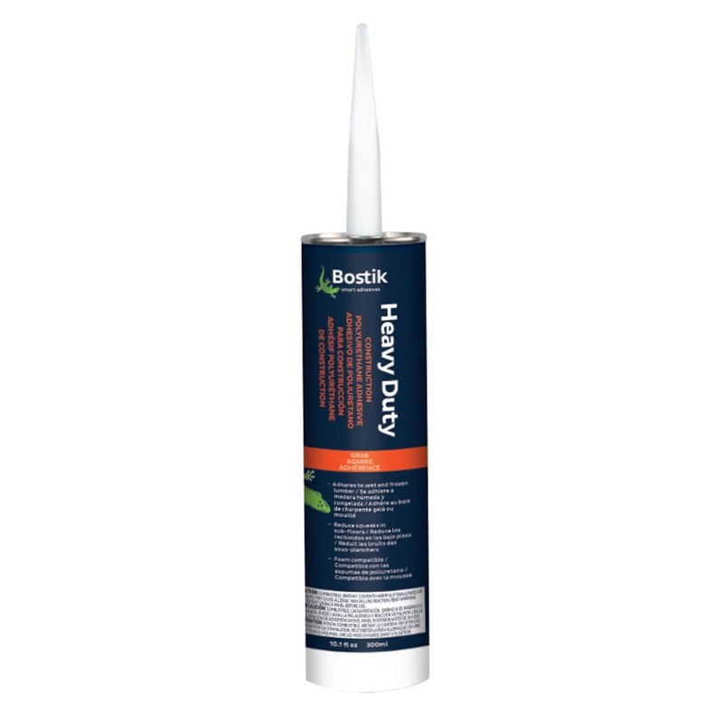 Introducing Bostik Heavy Duty Construction Adhesive – a one-component, premium-grade polyurethane meticulously crafted for subfloor and floor joist assemblies. This heavy-duty adhesive stands out with a range of features that elevate its performance and versatility. Ideal for dry scape construction and foam compatible, this adhesive is designed to adhere to wet and frozen lumber, ensuring reliable performance in various conditions. Experience a significant reduction in squeaks and nail pops in subfloors and stair treads, contributing to a quieter and more stable construction. With prolonged repositioning time, the Heavy Duty Adhesive allows for precise adjustments during installation. The easy gunning feature requires less effort for the applicator, providing a smoother and more efficient application process. Get more value for your investment with this product, offering ample coverage for your construction needs. Suitable for multi-environmental climate use, this adhesive boasts minimal odor, ensuring a more pleasant working environment. Benefit from a quick full cure, speeding up your construction timeline. The mustard color signifies its distinct identity in your toolkit. Choose Bostik Heavy Duty Construction Adhesive for a reliable, efficient, and high-performance solution, where quality meets convenience for your construction projects.