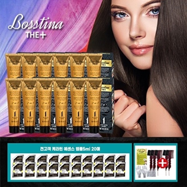 본품(1제 55ml+2제 55ml)*12box + 보스티나 케라틴 에센스 앰플(5ml)*20매 + 빗5개* 염색보, 장갑은 염색제 본품에 함께 동봉되어 있습니다. *