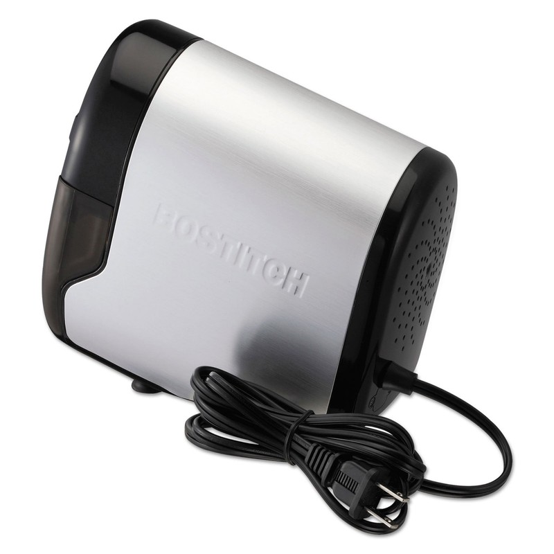 With its unique curved shape and sleek brushed-metal case, the QuietSharp Glow offers class-leading style and classroom survivability. Bonus: the pencil sharper is antimicrobial protected, which helps promote a cleaner classroom. Weighing 4.03 pounds, the QuietSharp electric pencil sharpener measures 10.63 inches long by 6.13 inches wide by 9 inches high and carries a seven-year limited warranty.