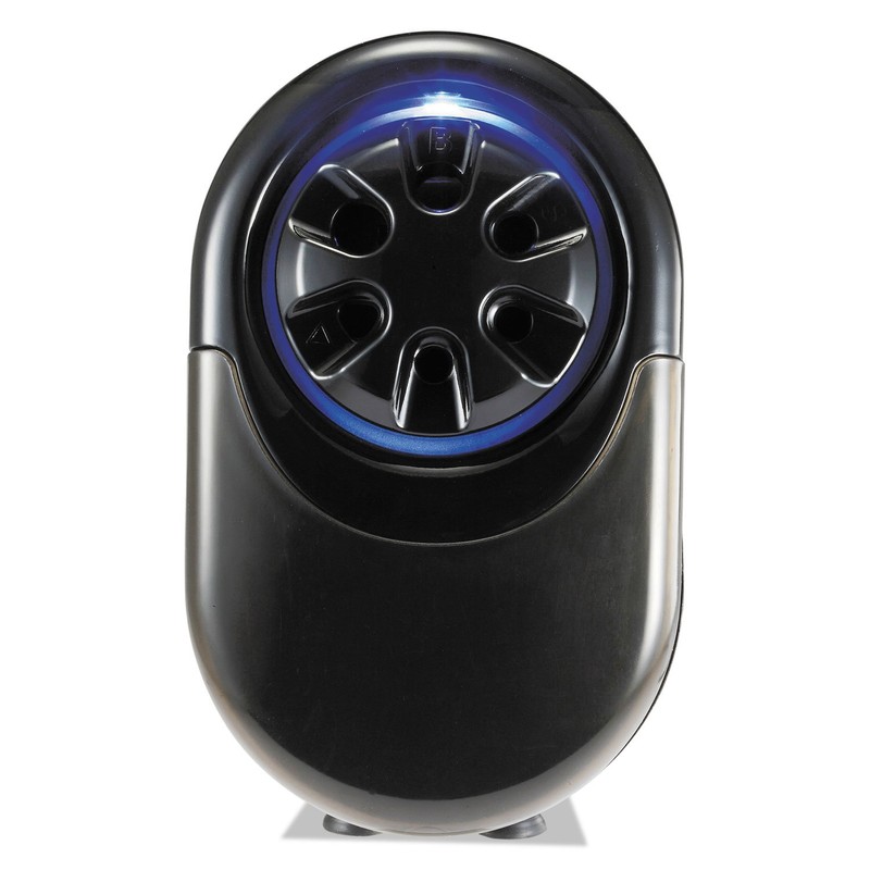 To extend pencil life and reduce classroom-disturbing noise, the QuietSharp Glow's SharpStop system automatically shuts the sharpener down when sharpening is complete. Then a unique SharpGlow illumination will light, creating a soft blue glow around the dial to provide a visual indicator. No more over- sharpening.