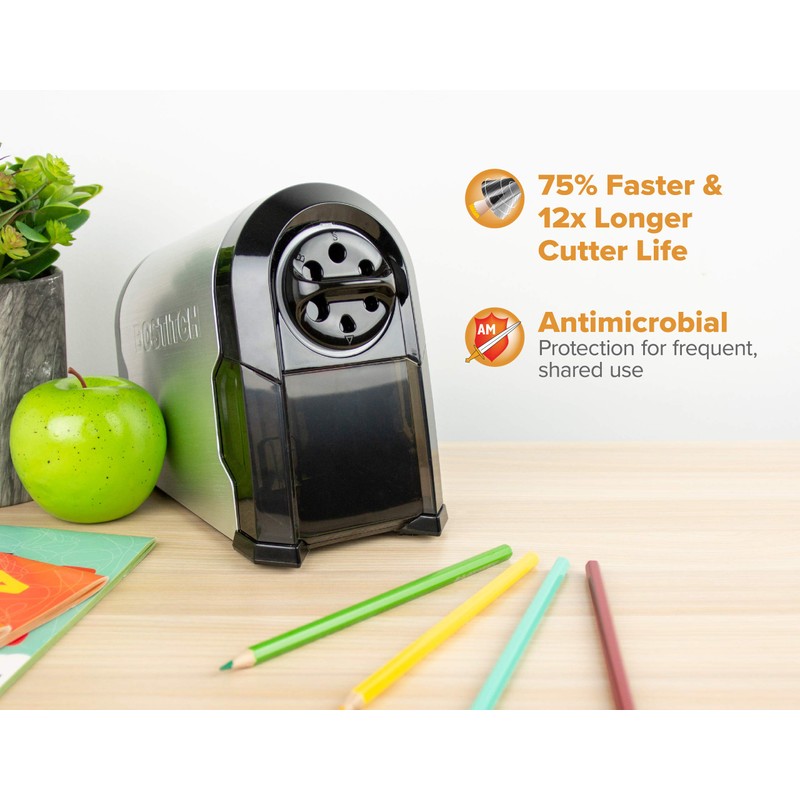 Bostitch Antimicrobial SuperPro Glow Extra Heavy Duty Commercial Classroom Electric Pencil Sharpener with Replaceable Cutter Cartridge System, 6-Hole, Silver/Black (EPS14HC)
