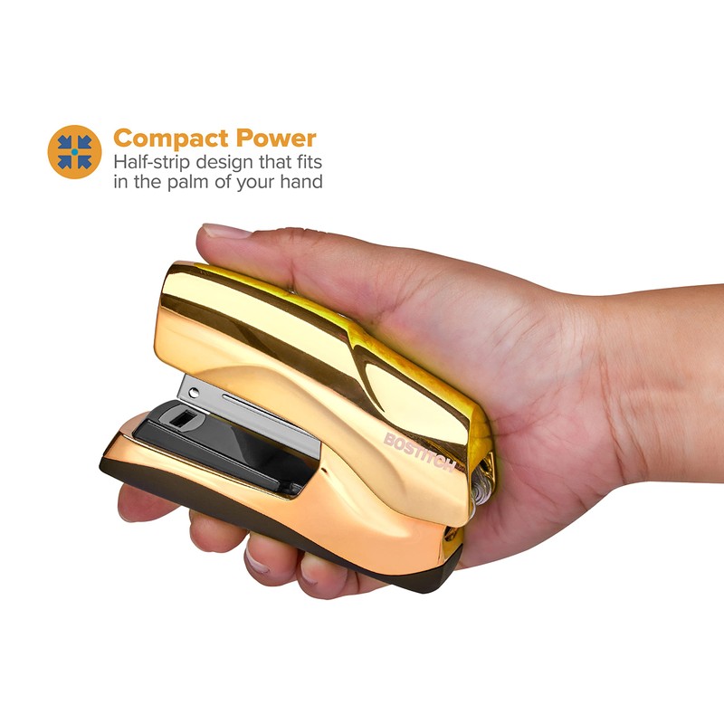Bostitch Office Heavy Duty Stapler, 40 Sheet Capacity, No Jam, Half Strip, Fits into the Palm of Your Hand, For Classroom, Office or Desk, Gold Chrome