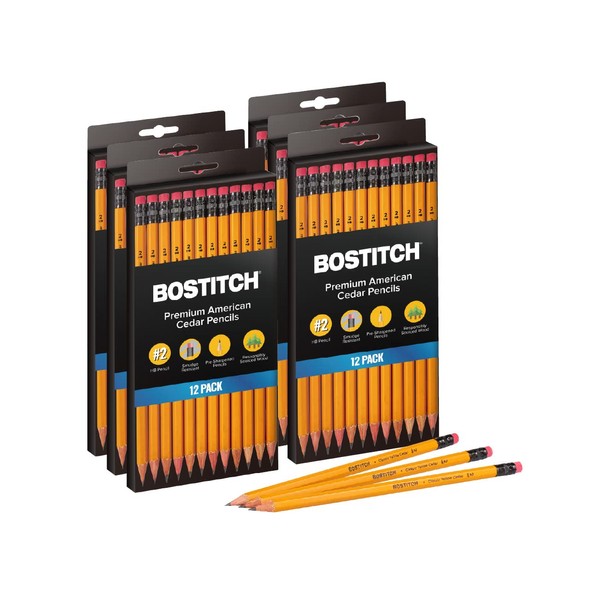 Bostitch Office Premium #2 Pencils, American Cedar Wood, Pre-Sharpened, HB Graphite, 72-Pack