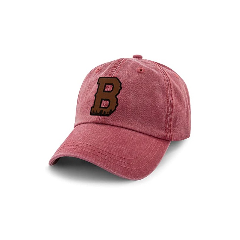 Boston B Skyline Leather Patch Washed Dad Hat Cardinal