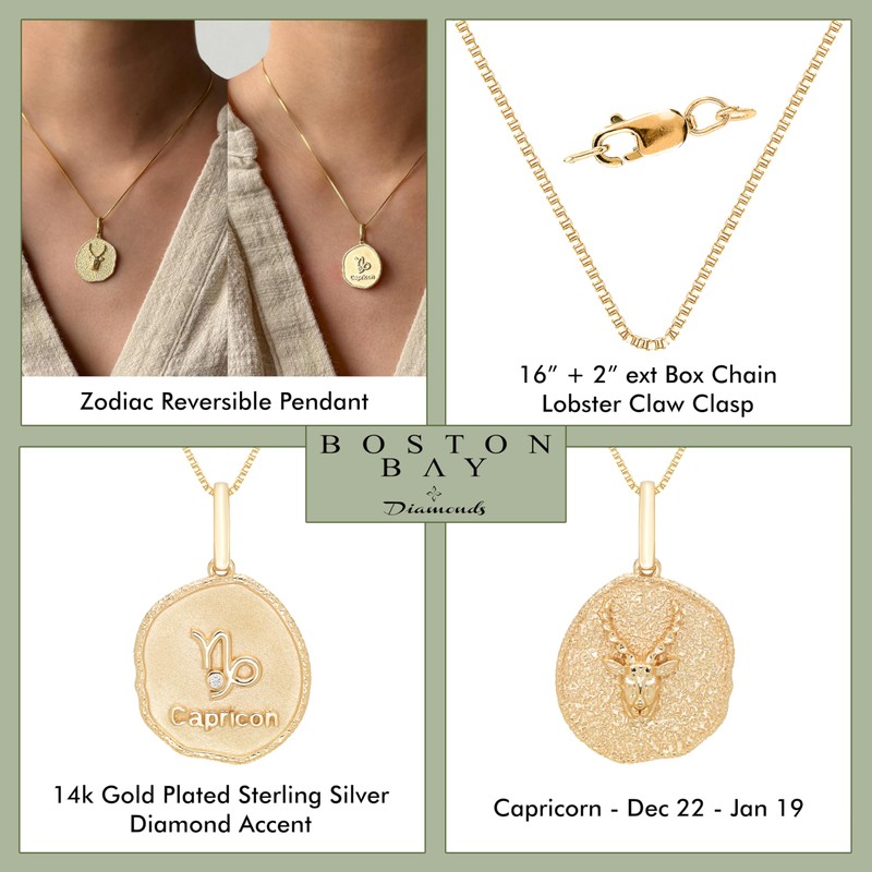 Boston Bay Diamonds Reversible Double Sided Freeform Round Diamond Capricorn Zodiac Astrology Pendant Necklace in 14K Yellow Gold Plated Sterling Silver with 18 Inch Box Chain