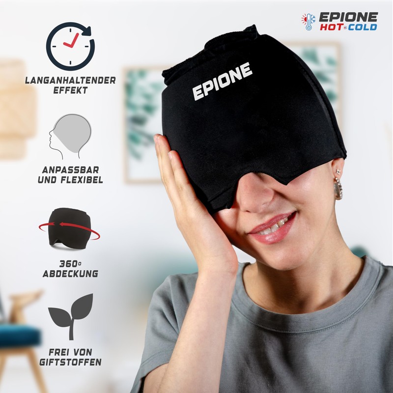 - 360 COMPRESSION & COMPLETE RELIEF The Epione hat provides complete compression to relieve migraines, headaches and facial tension, covering the entire head, eyes and temples for optimal comfort.