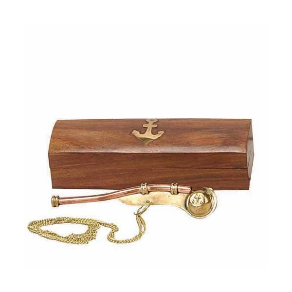 - This signaling device was so essential to the well-being of the ship, that it became a badge of office and honor in the British and American Navy of the sailing ships. This beautifully detailed solid brass and copper bosun's whistle comes with a quality solid brass chain lanyard.