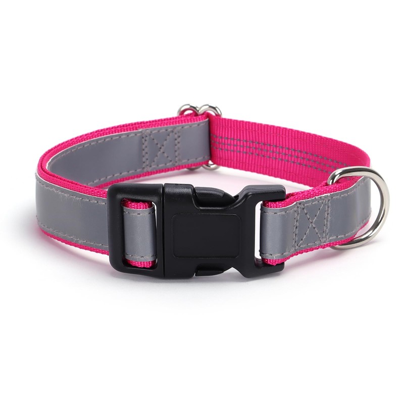 Boswany Highly Reflective Dog Collar, Adjustable Nylon Basic Collar Quick Release Buckle (Small,10"-15" Rose Red)