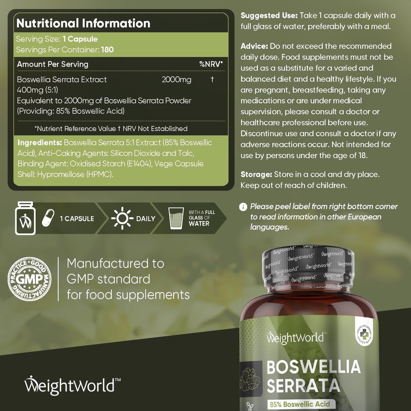 Boswellia Serrata Extract 2000mg - 85% Boswellic Acid - 180 Vegan Capsules - ...