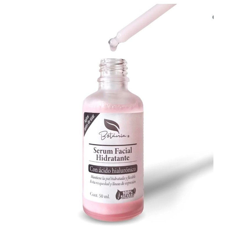 Botania Serum Facial Hidratante con Ácido Hialurónico, 50 ml, mantiene la piel hidratada, reduce aparicion de lineas de expresion, evita resequedad. Vitamina C, agua de rosas, esencia de manzana verde, aroma delicioso.