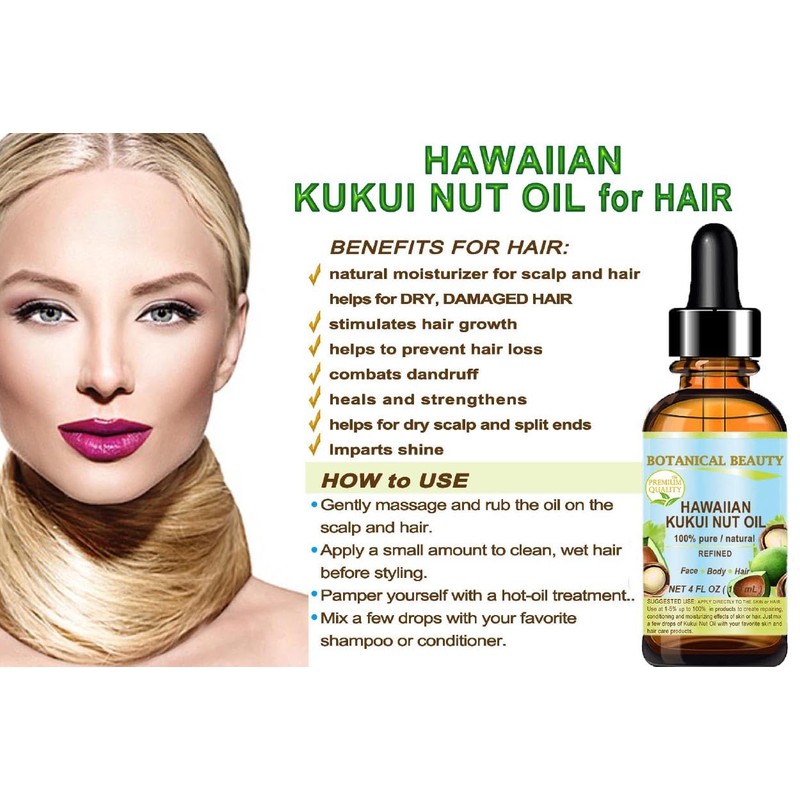 - KUKUI NUT OIL HAWAIIAN is a great emollient for the SKIN AND HAIR.